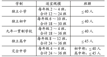 教育装备配备标准是作为学校教育教学必要条件的规定,是对学校构成学生学习环境、学校生活环境、教师工作环境、学生活动环境等条件的基本要求。配备标准一般是对教育装备种类与数量的规定,中小学校舍、场地配备标准的指标规定与学校的规模(学生人数)有关,与学校学制(小学、初中或高中)有关,与学校地域属性(城市、乡镇或农村)有关。表1开列了中小学校舍、场地配备标准规定的部分条件基本要求项目;表2开列了配备标准对学校规模的规定实例;表3开列了配备标准对教室数量的规定。