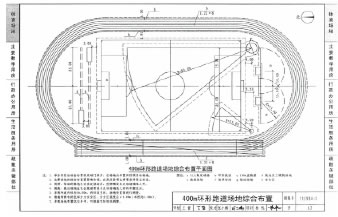 在正式颁布《规范》的同时,还出版了2个配合该标准的图集——《<中小学校设计规范>图示(11J934-1)》《中小学校场地与用房(11J934-2)》。这两个图集非常详细、精致地画出了学校教室、实验室、运动场、教学辅助用房等建筑的框架结构、几何尺寸、内部布局,并且对建筑材料也做出规定。图1、图2是从图集中截取的2个图例,分别为对普通教室和400 m环形跑道场地的详细描述。