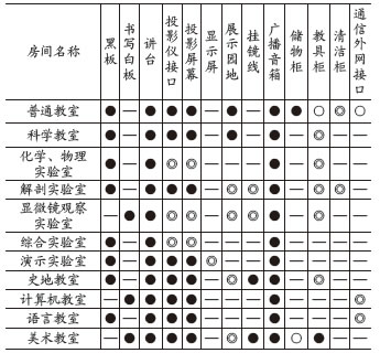 与配备性的地方标准中具有少量质量、安全规定的情况相同,作为以质量标准为主的《规范》中也涉及了校舍、场地配备种类的规定,还具有一些详细的教室、实验室以及教学辅助用房内部设备设施配置的规定。表6为《规范》中提出的部分教学用房内设备设施的配备要求。