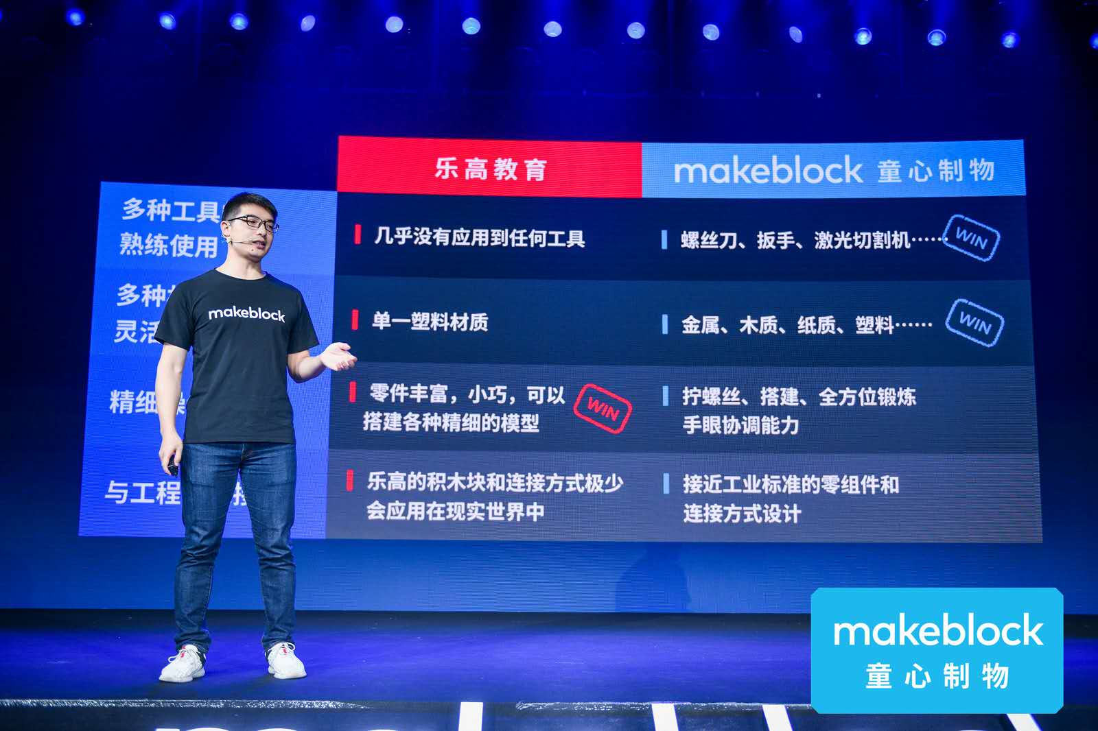 会上,王建军还以大众熟悉的“乐高”举例,通过对比来展现自家产品的优势。王建军认为真正的动手能力应包括多种工具的熟练运用、多种材料的灵活运用、精细化的操作以及与工程的实际接轨四个方面,倘若只是简单的动作不断重复,通过轻微刺激让人呆在舒适区,只能是被动的接受而缺乏主动的思考,唯有让孩子从玩乐中接触及掌握前沿科技应用,才能实现孩子新时代的创造。