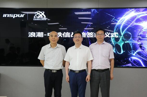 (从左到右依次为:中铁信总经理锁向荣、浪潮集团副总裁彭震、中铁信董事长郭年根)