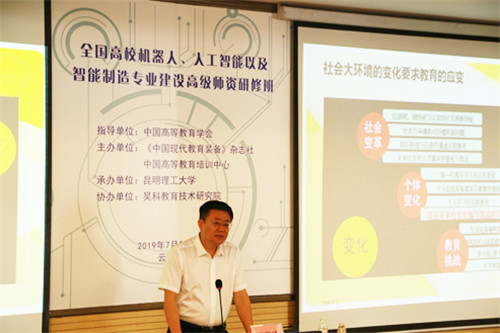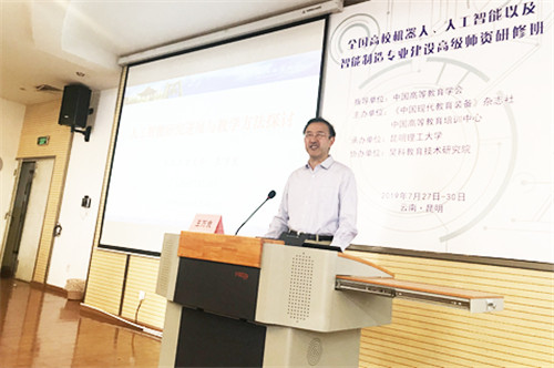 2019年7月28日,由中国高等教育学会指导,《中国现代教育装备》杂志社和中国高等教育培训中心主办,昆明理工大学承办,昊科教育技术研究院协办的“全国高校机器人、人工智能以及智能制造专业建设高级师资研修班”在昆明理工大学顺利开班。共有来自全国20余所高校的近50名学员报名参加本次研修班。