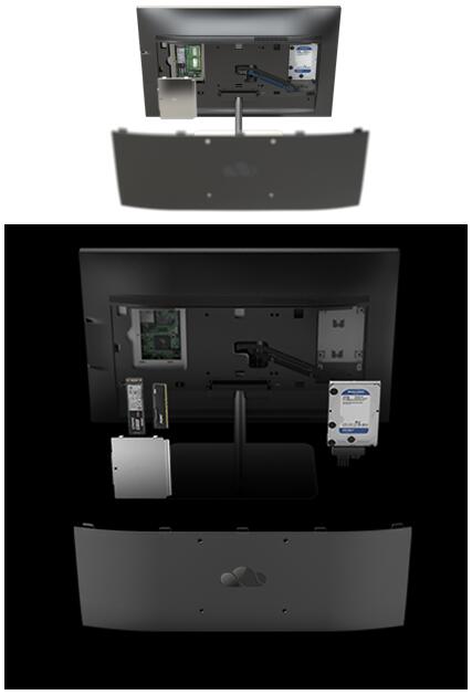 反映硬件升级规律的摩尔定律里,元器件每隔 18 至 24 个月就会增加一倍,性能也将提升一倍。而云桌面的硬件升级需求也需找到合适的满足方式。一体机团队创新的可拆卸后盖,通过一拆一装设计让产品具备内存灵活扩容能力,同时,还从设计上巧妙实现了后盖“好拆”:仅仅拧2颗螺丝,就能完成产品的拆卸、设备的维护以及配件升级。