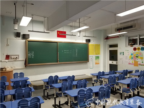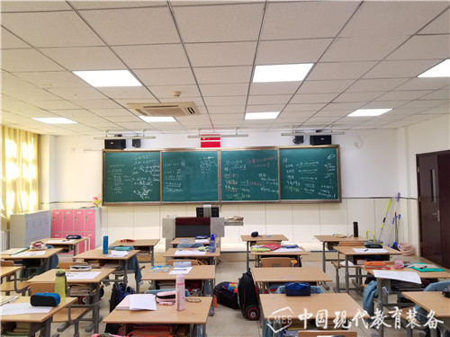 2.北京四中是北京市首批示范性普通高中,也是全国中小学现代教育技术实验学校。学校启动对学校灯光的升级改造,让照明设施更显名校风范。改造前学校教室照明以传统荧光灯为主,照度低于300lx。黑板灯老旧起不到效果,且存在光频闪现象。光源裸露造成了光线直射眼睛,也影响到学生的视觉健康。校领导在体验了立达信所打造的全护眼健康光环境示范教室后,立即决定全校教室进行灯光改造。立达信团队在实地专业勘测、详细分析后,选用立达信全护眼照明产品,进行专业照明方案设计,对整校光环境进行升级改造。改造后,课桌面照度达到理想的492lx,远优于国家规定的标准300lx,且灯具达到“见光不见灯”的优质防眩效果。