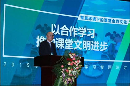 在上午的第一个环节,全国知名校长、合作学习研究和推广专家郑杰做 “以合作学习推动课堂文明进步”的主题演讲。郑杰校长从宏观趋势、中观支持和微观研究三个方面系统阐述了合作学习在国内的研究和实践现状,并提出了“建立合作学习研究共同体,形成本土化的合作学习经验,培养合作学习人才,提高合作学习专业水平”的目标,并向与会者发出了“让我们用文明的方式,推动千万间课堂的文明进步”的倡议。