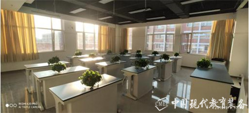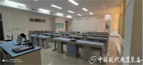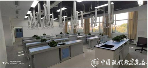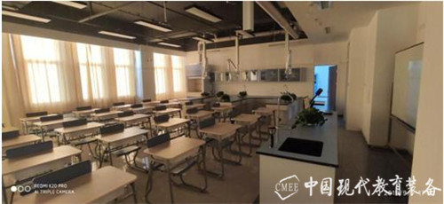 两间化学实验室,分别采用两种不同的设计理念。一间使用教室分区设计,分为教学区和实验区,教学区在整间教室中间面对讲台,采用常规课桌椅设计,便于学生听课;实验区在教学区两侧,采用U形全钢边台设计;不同分区的教学模式可以有效节约教室空间,使教学与实验巧妙的结合到一起。另一间教室采用顶排风通风系统常规摆放模式,新型化学实验台配备了最新的通风系统,通过多元探头对污染源和超标气体进行多点探测,在中央控制单元的协调下对通风设备实现智能远程控制,可以最大程度地避免化学实验中产生的各种有害气体对教师和学生的伤害,保证师生生命健康安全,同时也保证化学实验的正常进行。