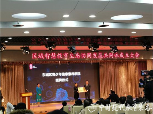 会上,东城区委教工委书记刘藻宣布东城区青少年信息素养学院正式颁牌成立。