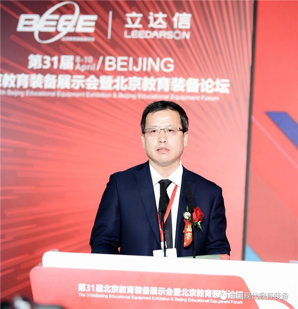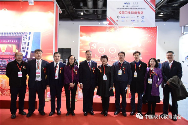 北京市高等教育学会会长、北京市教育委员会原主任线联平,中国高等教育学会副秘书长王小梅,中国教育装备行业协会副会长兼秘书长夏国明,教育部教育装备研究与发展中心职业教育与高等教育装备处处长刘俊波,北京市教育委员会高等教育处调研员陈雷,北京市教育委员会基础教育二处调研员陆小红,北京市高等教育学会常务副会长王晓纯,北京市高等教育学会秘书长王晓燕,北京市高等教育学会技术物资研究分会理事长王杰,北京教育装备行业协会会长柴旭津,北京市教育技术设备中心主任岳江红,北京教育网络和信息中心主任武装,北京市国际教育交流中心主任谷天刚,北京市校办产业管理中心主任程诗敏,北京教育综合服务中心书记冯伟,北京教科院基教研中心副主任李卫东,北京学校后勤事务中心副主任杜树江,北京市高等教育学会实验室研究分会理事长史天贵,高校分析测试中心研究会副理事长李崧,北京市高等教育学会技术物资研究分会副理事长兼秘书长梁勇,北京教育装备行业协会副会长兼秘书长陈谦,中国高等教育培训中心执行主任赵锋,天津市高等教育学会实验室工作分会理事长杨波,河北省教育技术装备管理中心主任郭晋保,河北省教育装备行业协会会长郭国维,河北省高等教育学会实验室工作分会理事长孙学军,北京教育装备展示会独家冠名商立达信物联科技股份有限公司市场总监王科研等人出席了展会开幕式。