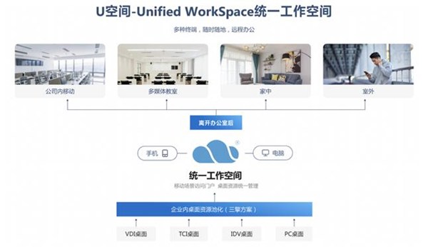 VDI桌面办公方案具备数据不落地、随处可访问的特性,使其成为安全+随时随地办公的理想选择。但实现VDI桌面方案空间化对于建设投入和维护都是一笔不小的数字,据测算,桌面云建设中单桌面成本超3000元,而要实现PC用户数据迁移,以单用户30G平均数据量、10多个应用安装量来计算则需要4小时以上的迁移时间。而U空间可支持VDI/IDV/TCI/PC任意桌面类型,用户仅需软件投入,无须迁移成本,极大地节省了设备、人力及时间成本。