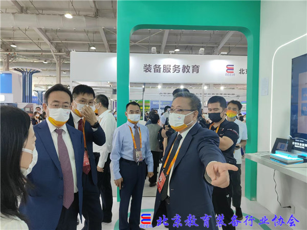 中共中央政治局委员、北京市委书记蔡奇,北京市委常委、教育工委书记夏林茂,北京市副市长、市政府党组成员卢彦莅临教育专题展区视察,北京市教委主任刘宇辉,副主任孙其军、柳长安、二级巡视员葛巨众、北京市教育交流协会会长黄侃等领导莅临教育装备展区指导。