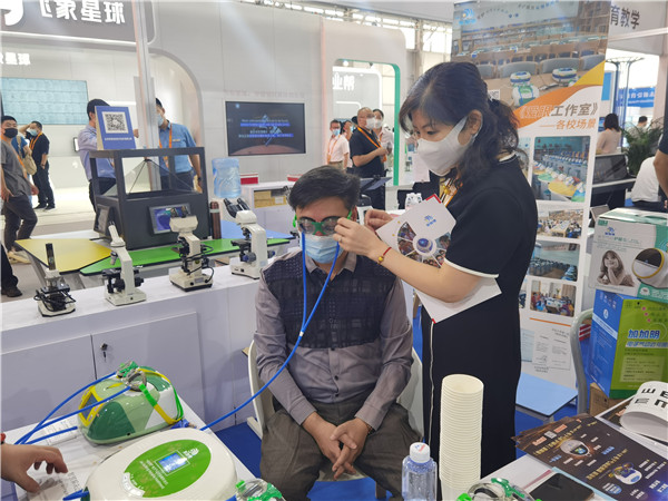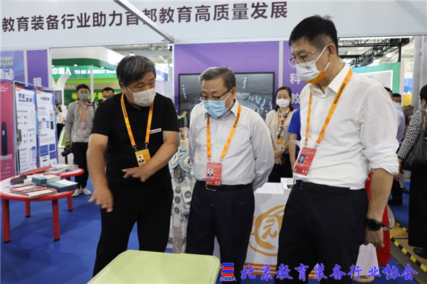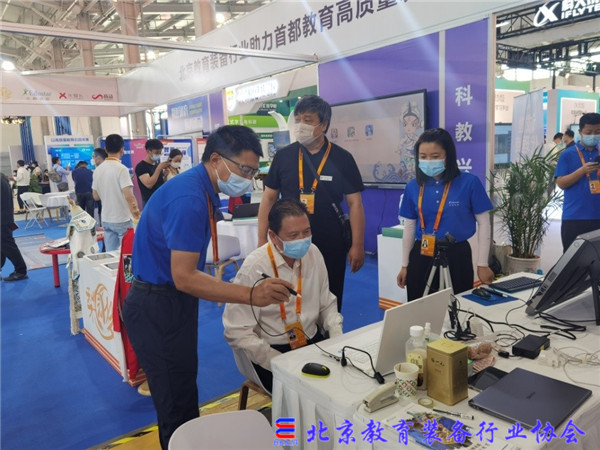 北京市教育交流协会会长黄侃在装备展区指导