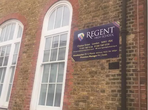 Regent High School位于伦敦中心地段Chalton Street,是一所当地的社区学校,有学生900多人。学校建筑外观现代感强,管理严谨规范,尊重多元文化,校长在介绍中以该校学生比同区域、同龄人更高的A-level成绩而感到骄傲。