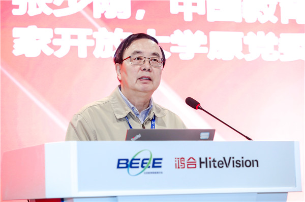 论坛开始,北京市数字教育中心(北京电化教育馆)副主任史陈新,北京市教委教育信息化处处长张宪国,中国教育技术协会常务副会长、国家开放大学原党委副书记、学术委员会主任张少刚,北京市教育学会常务副会长唐亦勤,教育部教育管理信息中心副主任曾德华先后致辞。