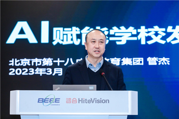 北京市第十八中学教育集团校长管杰做题为《AI赋能学校发展》的主题报告。