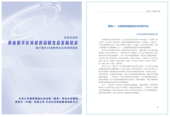 在《实然与应然:教育数字化转型供给侧生态发展现状调研报告》中的教育数字化转型典型案例部分,收录了云思智学赋能金华市问学平台的案例。