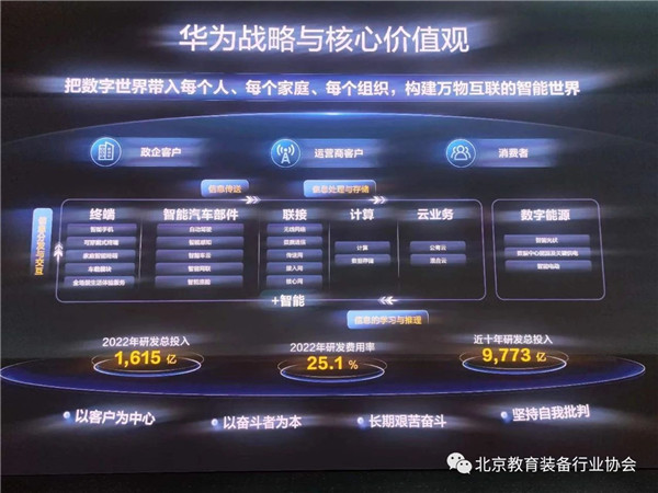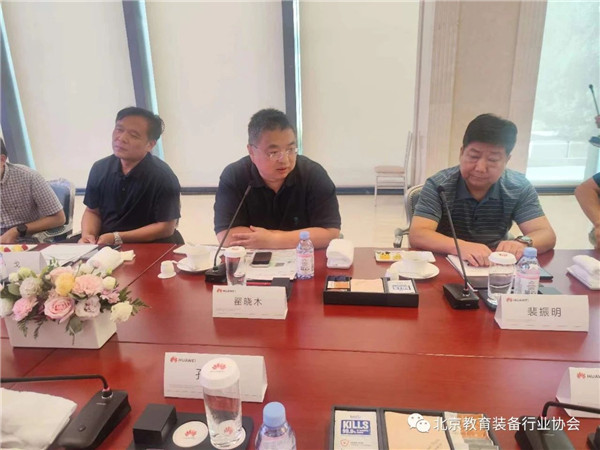 8月18日下午,应华为北京教育事业部邀请,北京教育装备行业协会组织部分会员赴华为会展中心参观。北京市数字教育中心主任武装、副主任何智,北京教育装备行业协会会长柴旭津、秘书长陈谦,延庆区教育技术装备中心主任朱军社,房山区教育技术装备中心主任王兆春,门头沟区教育资产管理服务中心主任祁海林,中国教育装备行业协会未来教育装备分会秘书长孔凡明以及海淀区、密云区教育装备部门负责人莅临现场参观指导,华为北京教育事业总经理高少奇陪同参观。