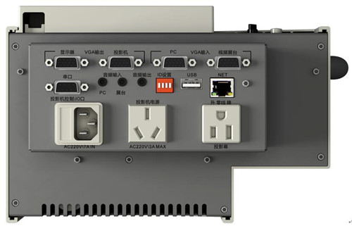 TES-5640系列的中控功能接口可连接所有教室设备,包括投影机、电子白板、实物投影仪、计算机、灯光等所有教室的设备电源和信号,教师则可以通过中控操作台控制上课/下课场景调用、多媒体视频信号选择、投影幕升/降和扩声信号选择(无线麦/固定麦/PC)等。