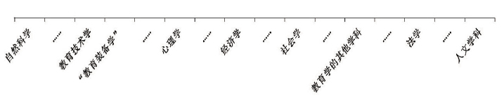 社会科学是处于自然科学与人文学科之间的一些学科,但是它们并不“集中”在一起,而是均匀地分布在自然科学与人文学科的“学科空间”中(如图1所示)。一些学科更加接近自然科学,另一些学科更加接近人文学科,而还有一些则处于中间的位置,它们在“学科空间”中所处位置决定于它们的研究对象。这是一个有趣的现象,例如像教育技术学、心理学这些学科的毕业生在获得学位时,他们可以获理学学位,也可以获教育学学位,就是这个现象的例证。那些更加接近人文学科的社会科学类学生是不会获得理学学位的。“教育装备学”也是比较接近自然科学的社会科学学科,所以一些高校的教育装备研究生也能够获得理学硕士学位。