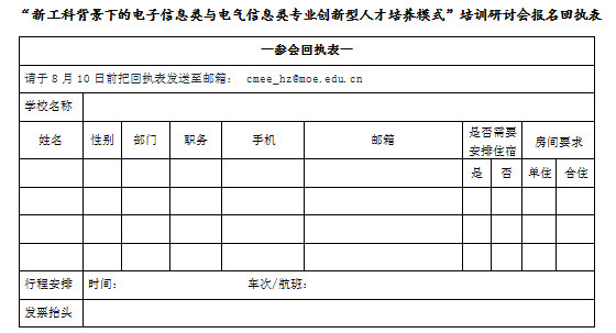 请各单位积极组织相关人员参加,并于8月10日前将回执表发至邮箱:cmee_hz@moe.edu.cn。