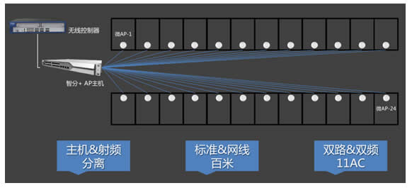 锐捷“智分+”解决方案采用创新的“主机+微AP”多级分布式架构,AP主机部署在弱电间,微AP直接部署在宿舍内,采用标准网线连接。微AP支持壁挂吸顶安装或嵌入86面板,安装灵活方便又美观,仅仅用了3个月时间就完成了所有学生宿舍的综合布线和安装调试。“智分+”为每间宿舍提供独享的2.4G的300Mbps和5G的867Mbps极限速率,轻松应对宿舍多人、多终端、重载、大流量考验。