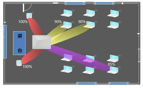 · 无线AP稳定的并发能力。课堂中,通常会有30~50位学生同步使用iPad,且课件中穿插大量的视频动画,这就需要无线AP具备稳定的并发能力,否则无法保证教学效果;