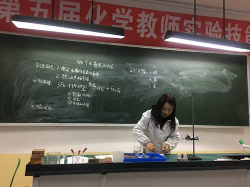 在比赛中老师能够严格按操作程序,熟练地操作每一个步骤;在创新实验中,每个实验都体现了一个“新”字,或对教材中传统实验步骤进行改进,或另辟蹊径创造新的方法,或是巧妙的利用自制教具来完成实验,展示了我市理科教师课堂实验教学的素质与业务技能水平。