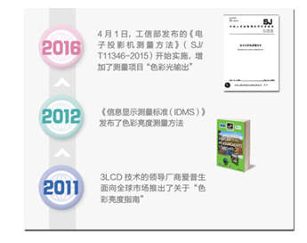 色彩亮度(CLO)在2012年被国际信息显示器协会(SID)纳入新版《电子投影机测量方法》,2015年10月10日被纳入工信部发布的电子行业推荐性标准《电子投影机测量方法》(SJ/T11346-2015)。可见色彩亮度(CLO)已经成为业界重要的标准,为用户提供着专业的产品选择指导。