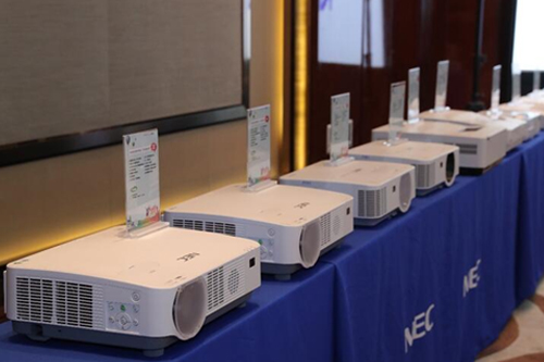 NEC现场陈列的多款教育投影机 可方便合作伙伴直观体验